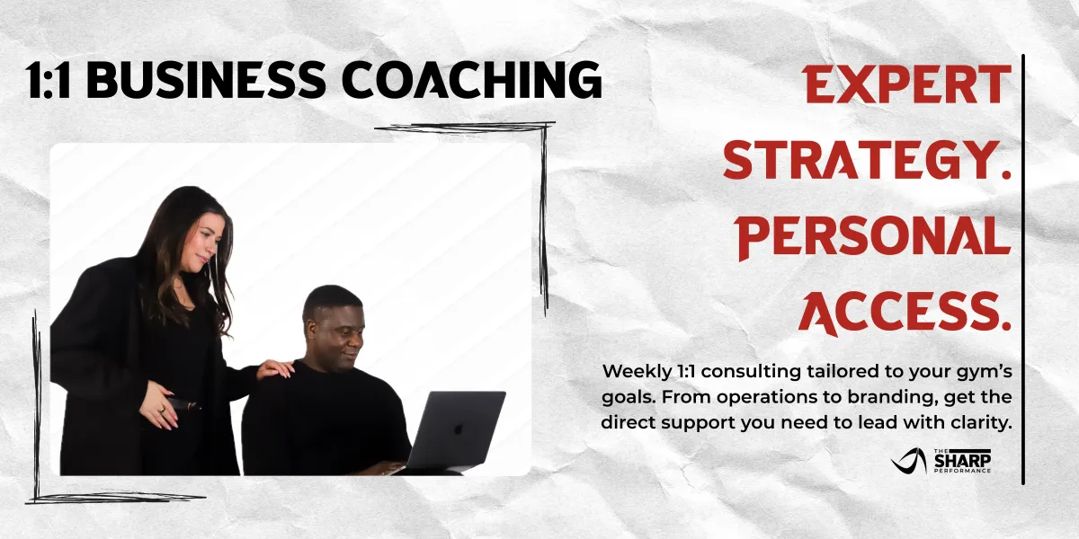The Sharp Performance offers personalized, one-on-one, and small group business coaching for gym owners who want direct, focused support. This program helps you strengthen your operations, elevate your staff, and create a more consistent and profitable program. Each session is tailored to your goals, giving you clear strategies, professional guidance, and ongoing accountability to move your business forward with confidence.